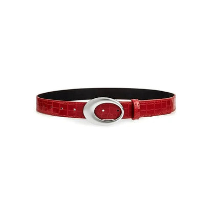 Crocodile Pattern Red Belt for Women – Chic Casual Belt with Silver Oval Buckle